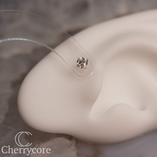 14k Gold- Princess Cut Cubic Zirconia- 3mm -Threadless Attachment