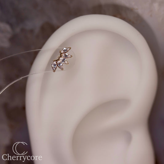 14k 5 Gem Pear Arc Cluster with Tri Bead Accents Threadless Attachment