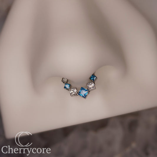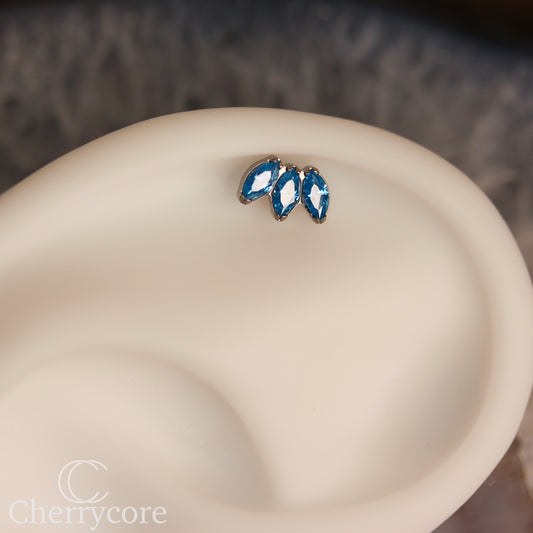 Mini Marquise Fan -Aqua CZ - Titanium Threaded Attachment