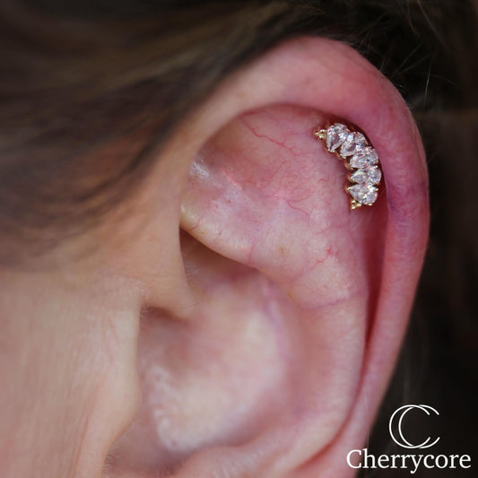 14k 5 Gem Pear Arc Cluster with Tri Bead Accents Threadless Attachment