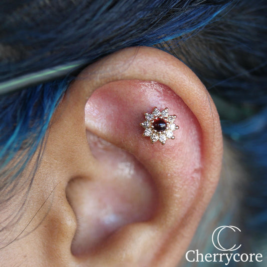 14kt gold Halo 7 gem cluster threadless attachment