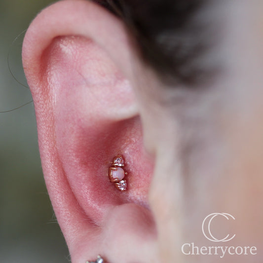 Croissant -Genuine Australian Opal and white Diamond- Threadless attachment