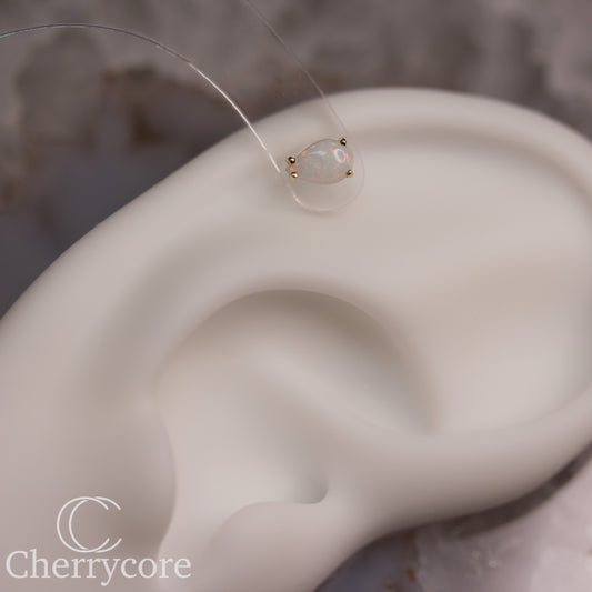 Genuine Australian Opal Cabochon-14k Yellow Gold- Threadless attachment