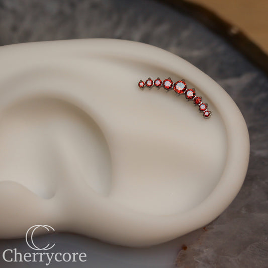 Prong Set Garnet CZ 9 Gem Arc- Threaded attachment