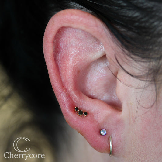3 Bead Arc - 14k Yellow gold- Threadless Attachment