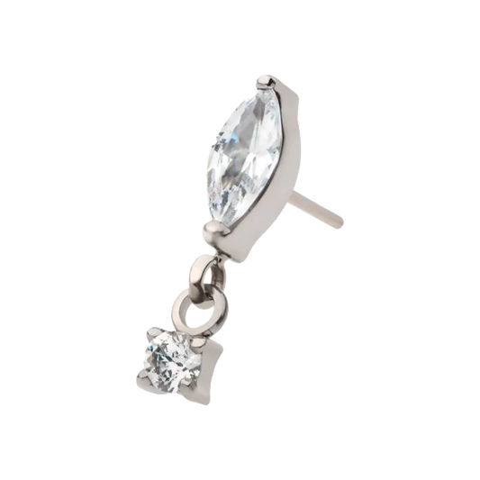 Titanium Marquise with Round Gem Dangle Threadless Attachment