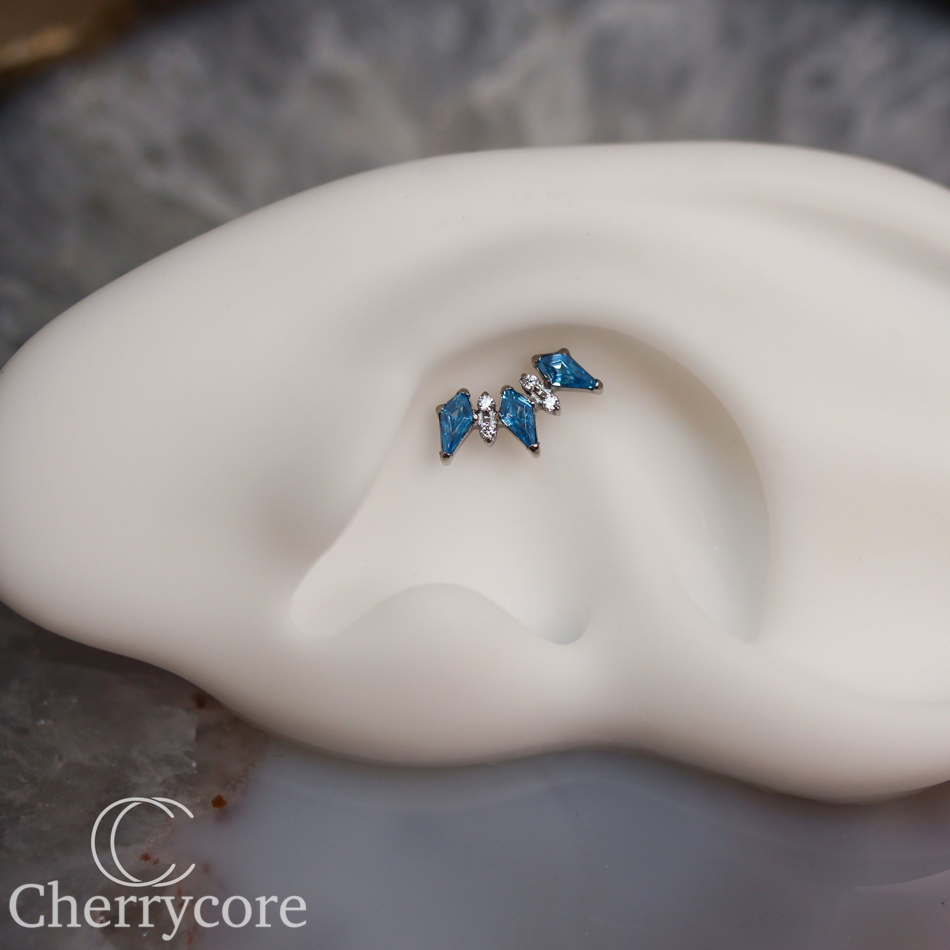 Featuring Kite cut prong set Aqua CZ & sparkling White CZ accent stones
