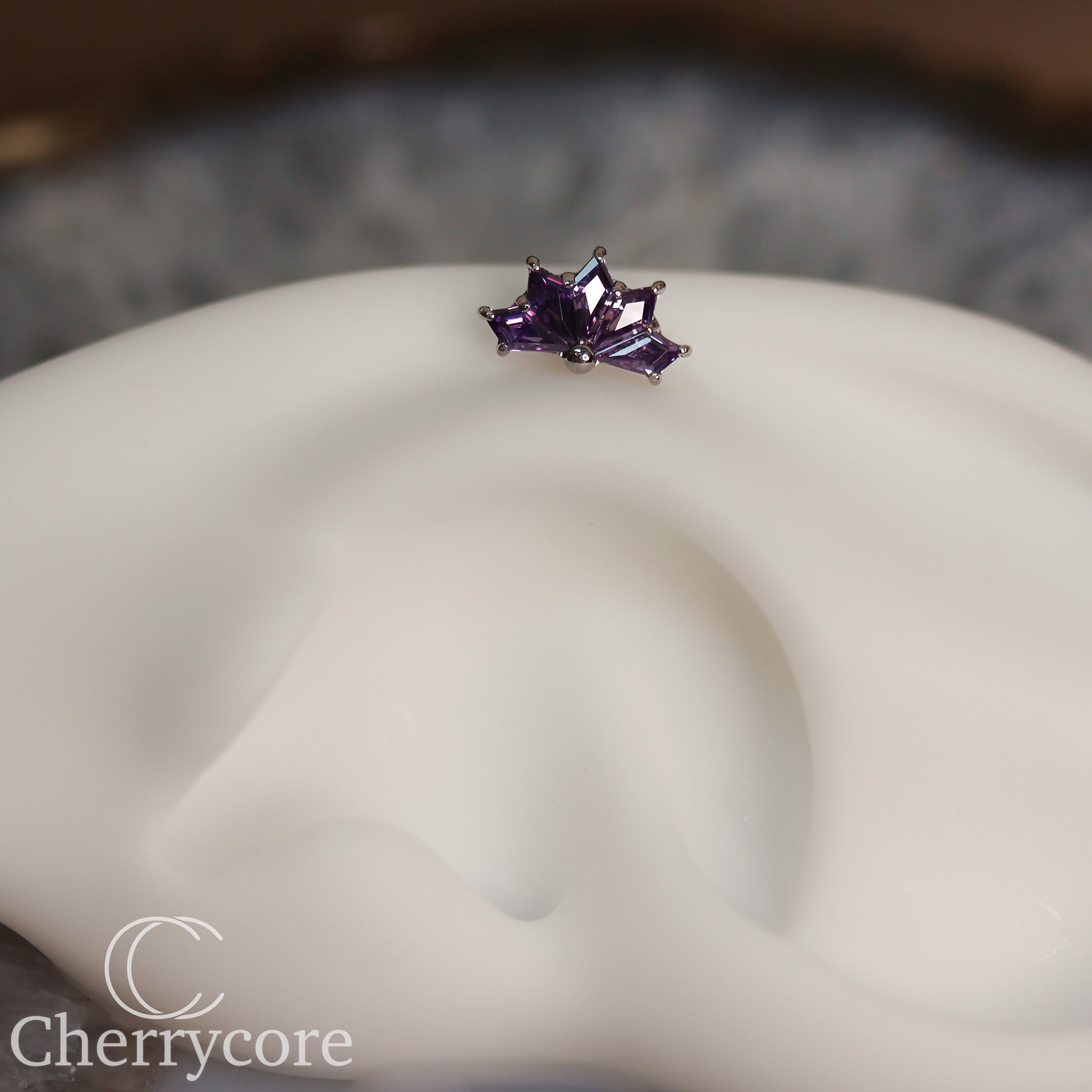 Kite Fan- Titanium-Amethyst CZ- Threaded attachment