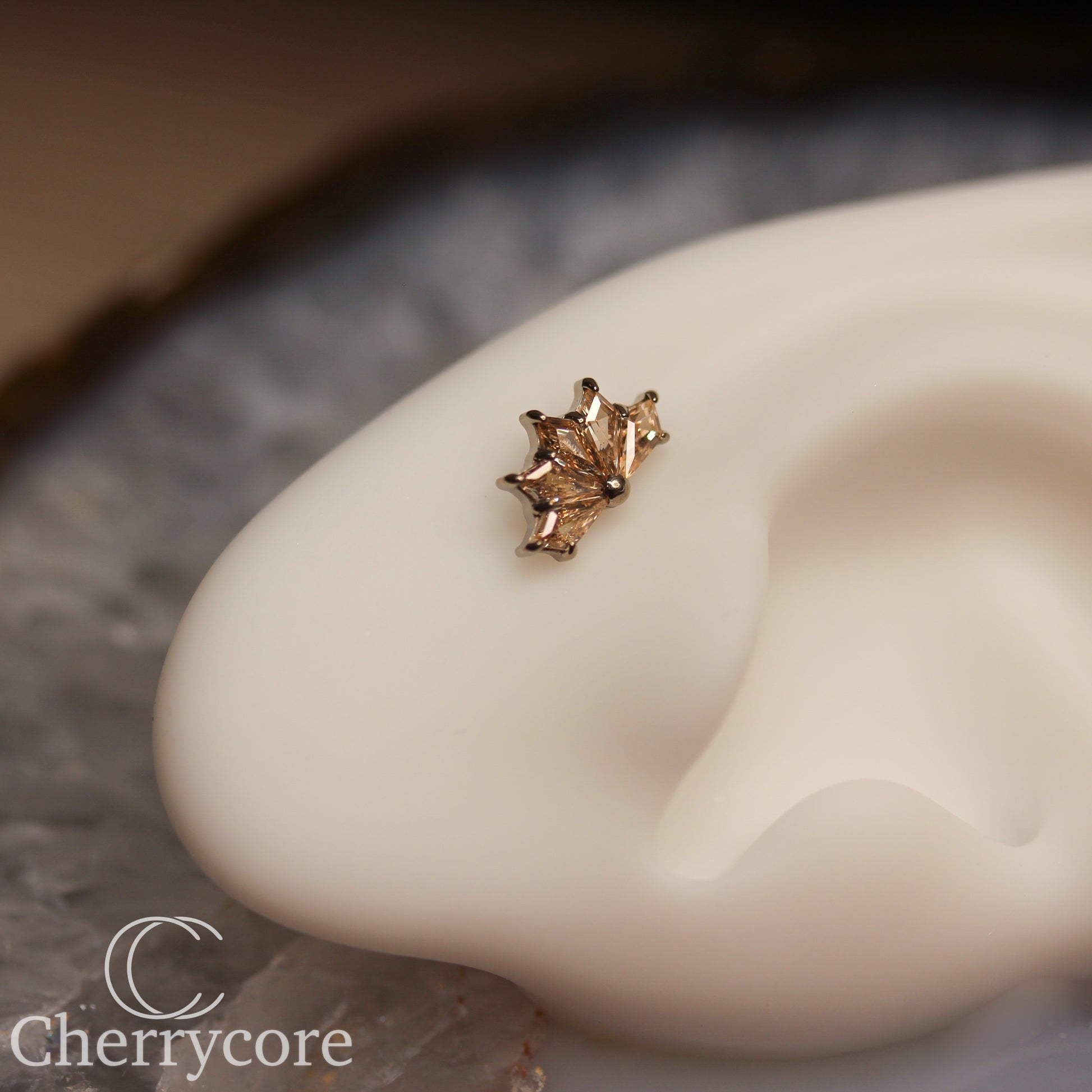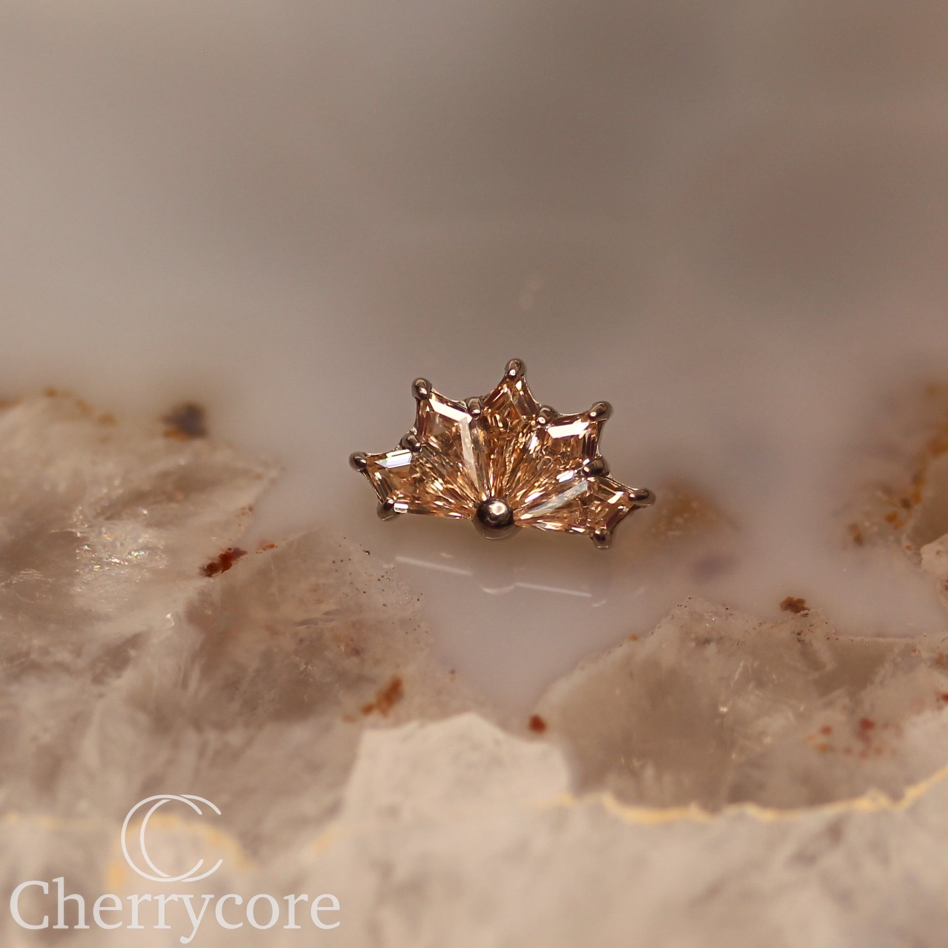 Kite Fan- Titanium-Champange CZ- Threaded attachment