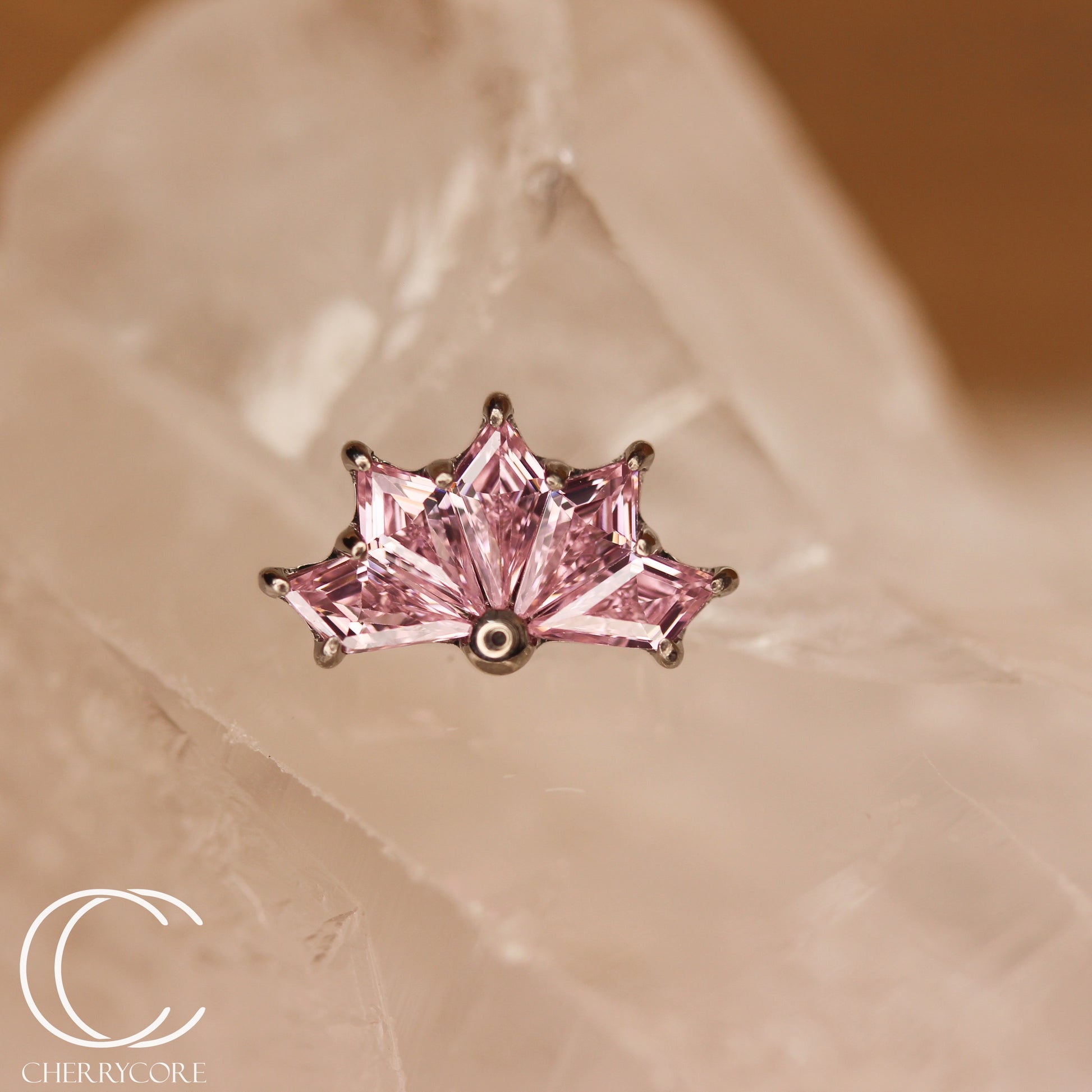 Kite Fan-Titanium-Pink CZ- Threaded attachment