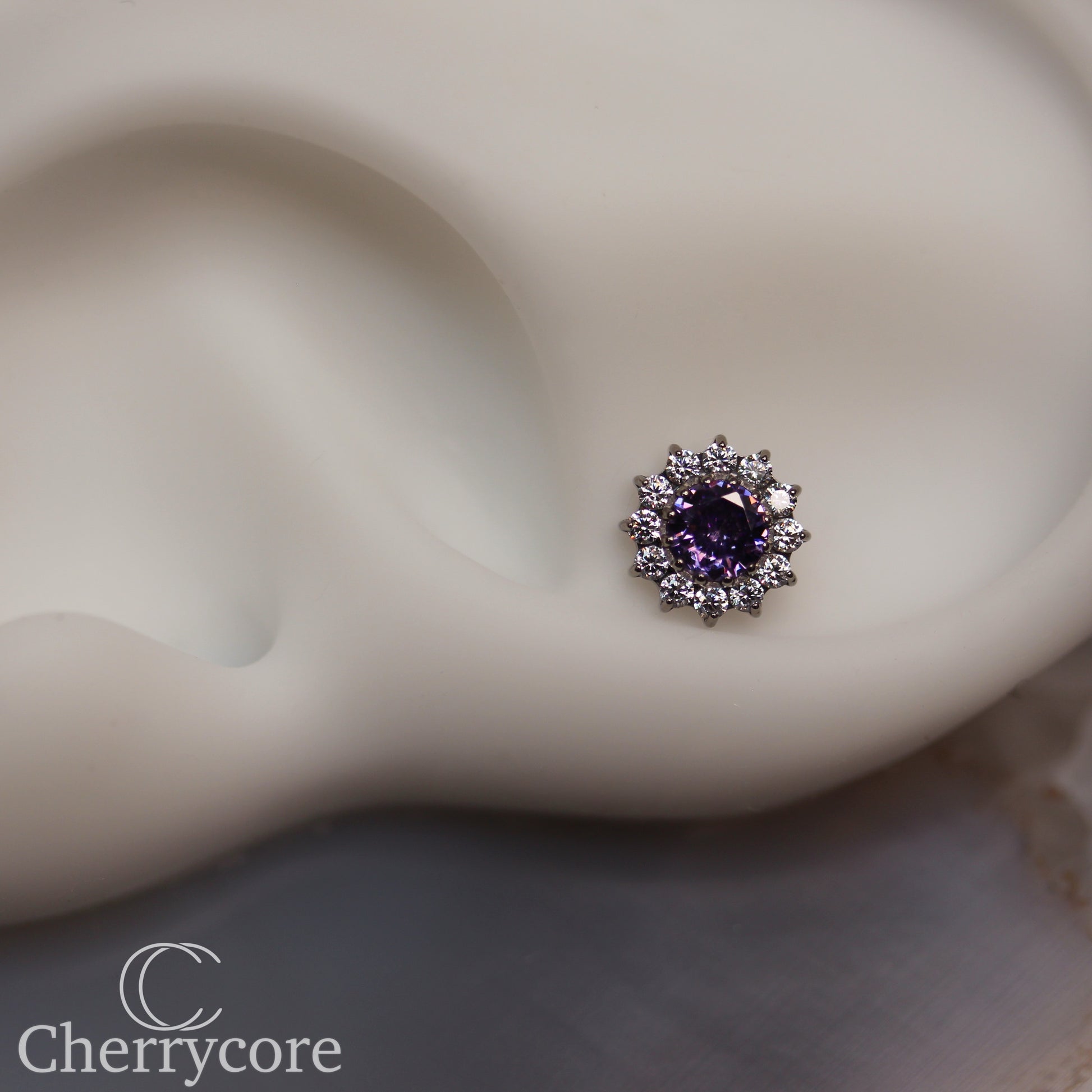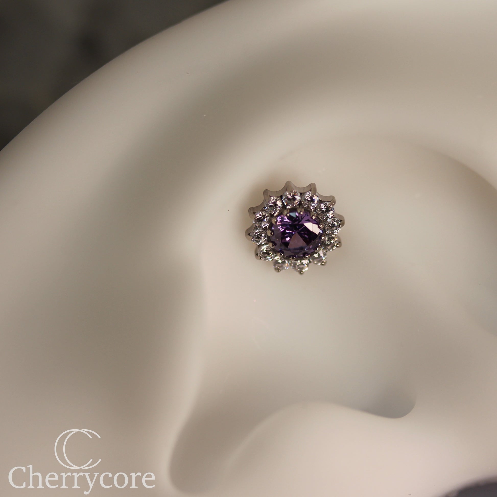 Large Amethyst CZ & CZ Flower - Titanium Threaded attachment