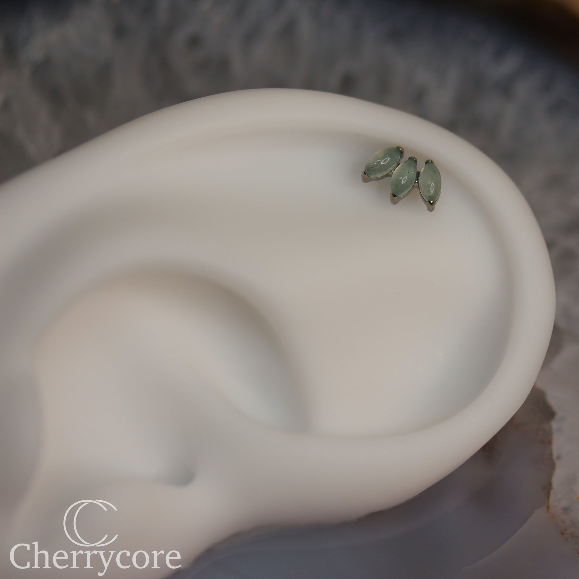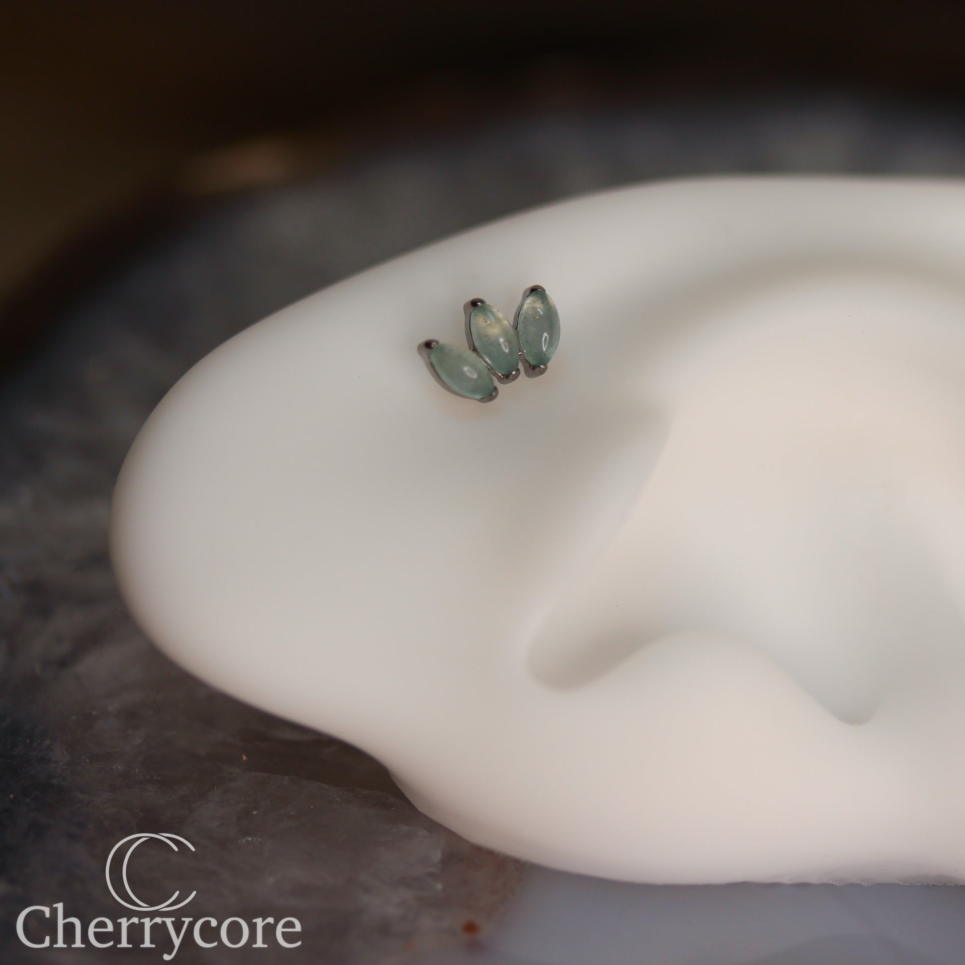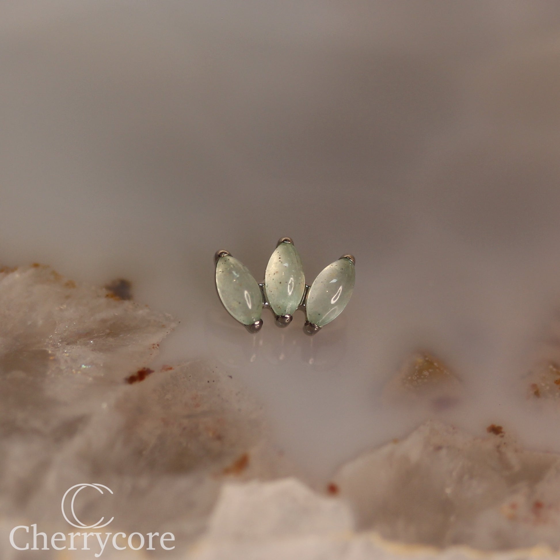 Mini Marquise Fan -Green Aventurine - Titanium Threaded Attachment