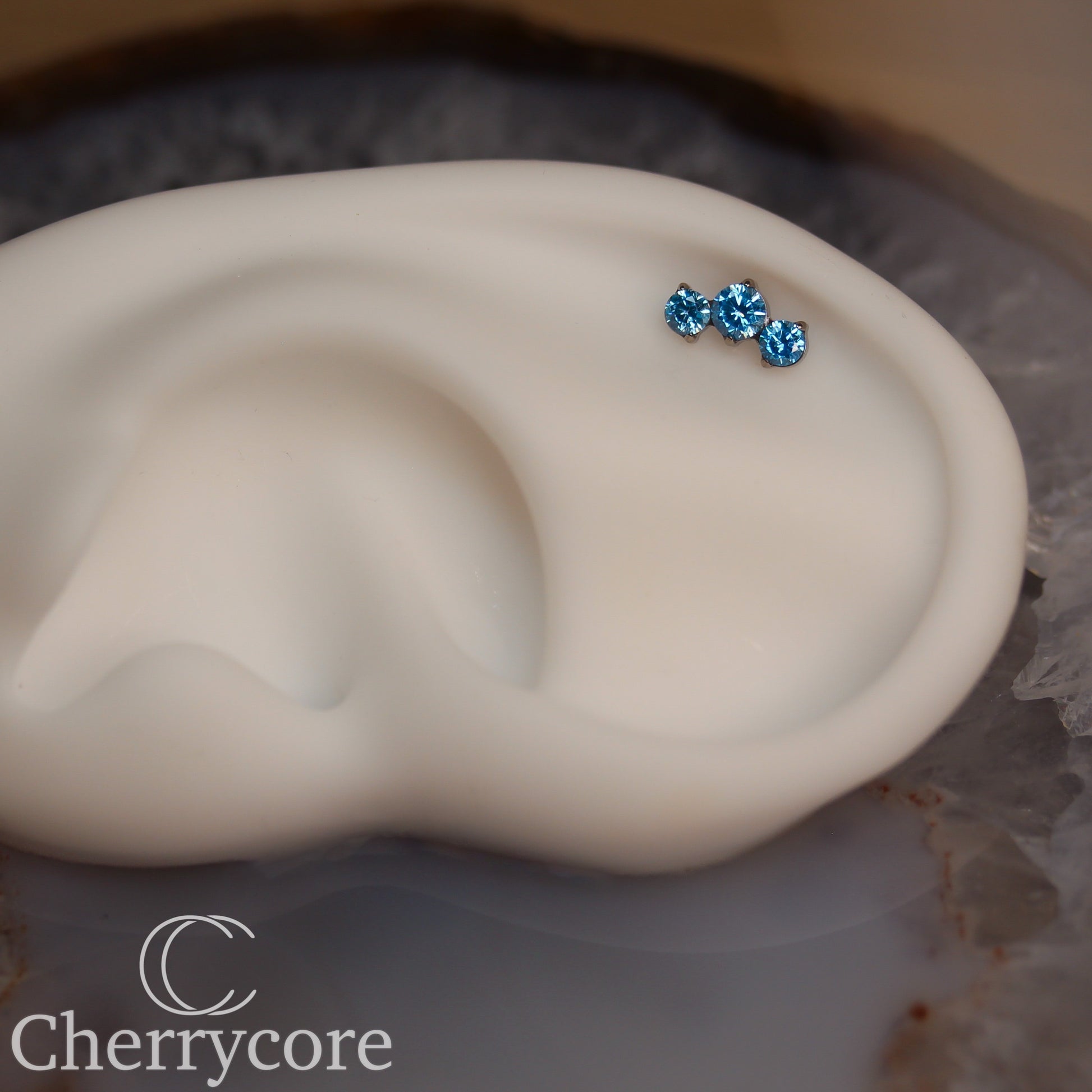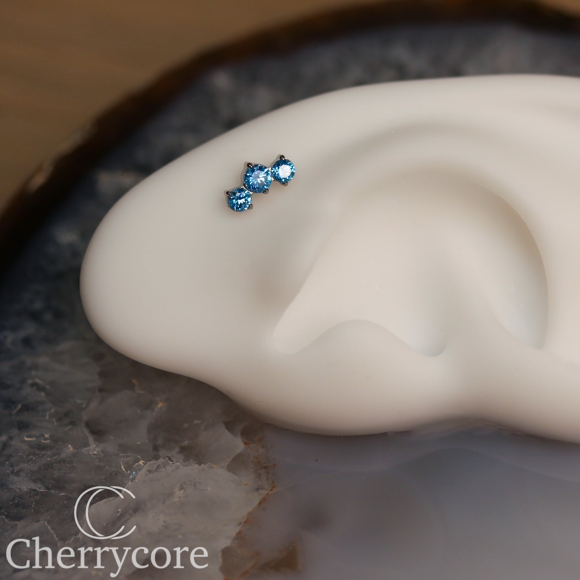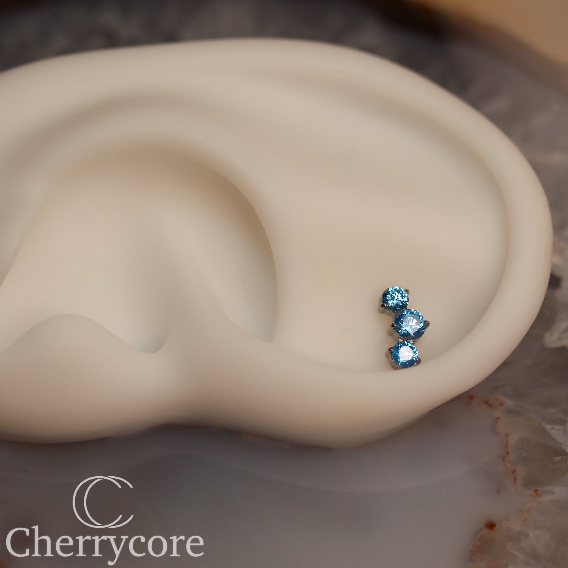 Prong Set Aqua Cz Mini Arc - Titanium Threaded attachment