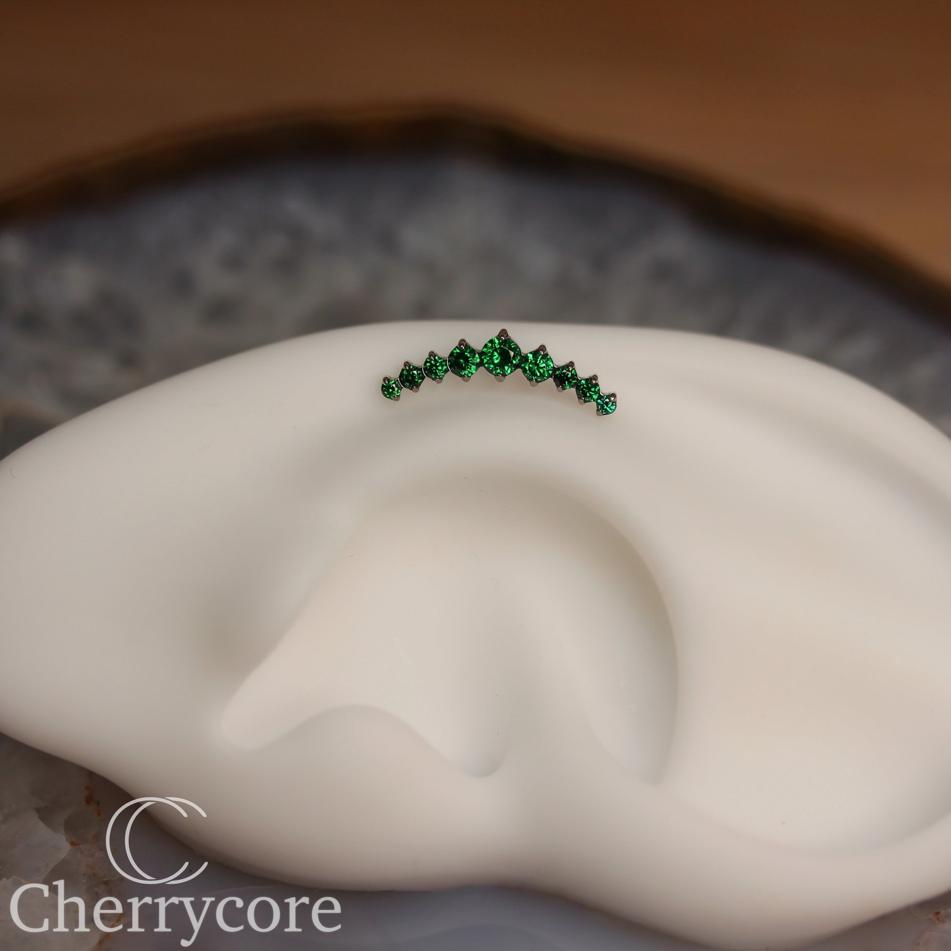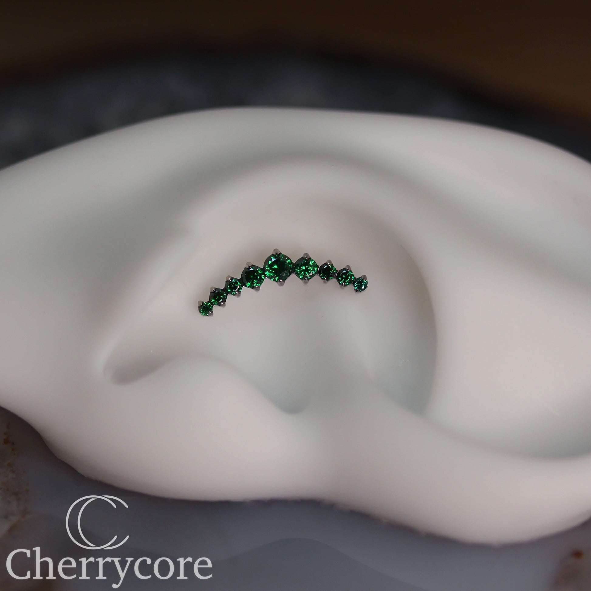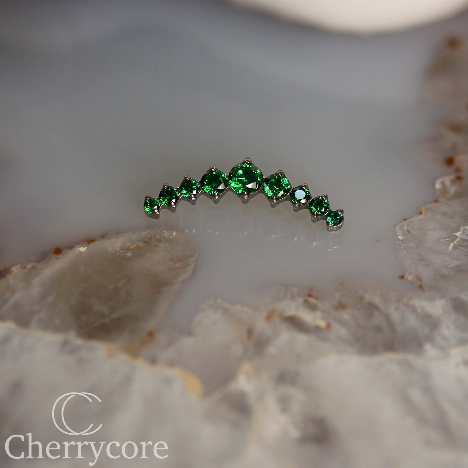 Prong Set Emerald CZ 9 Gem Arc- Threaded attachment