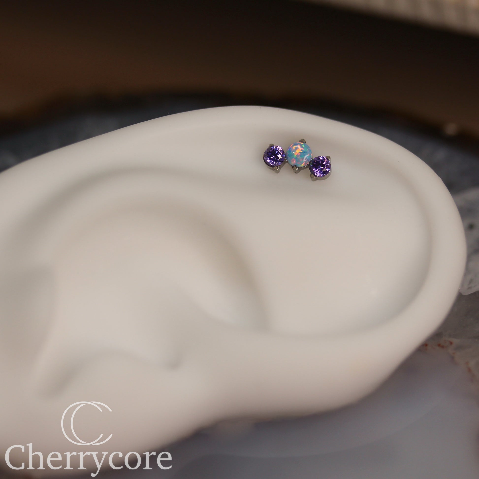 Prong Set Amethyst CZ & Lilac Opal Mini Arc - Titanium Threaded attachment