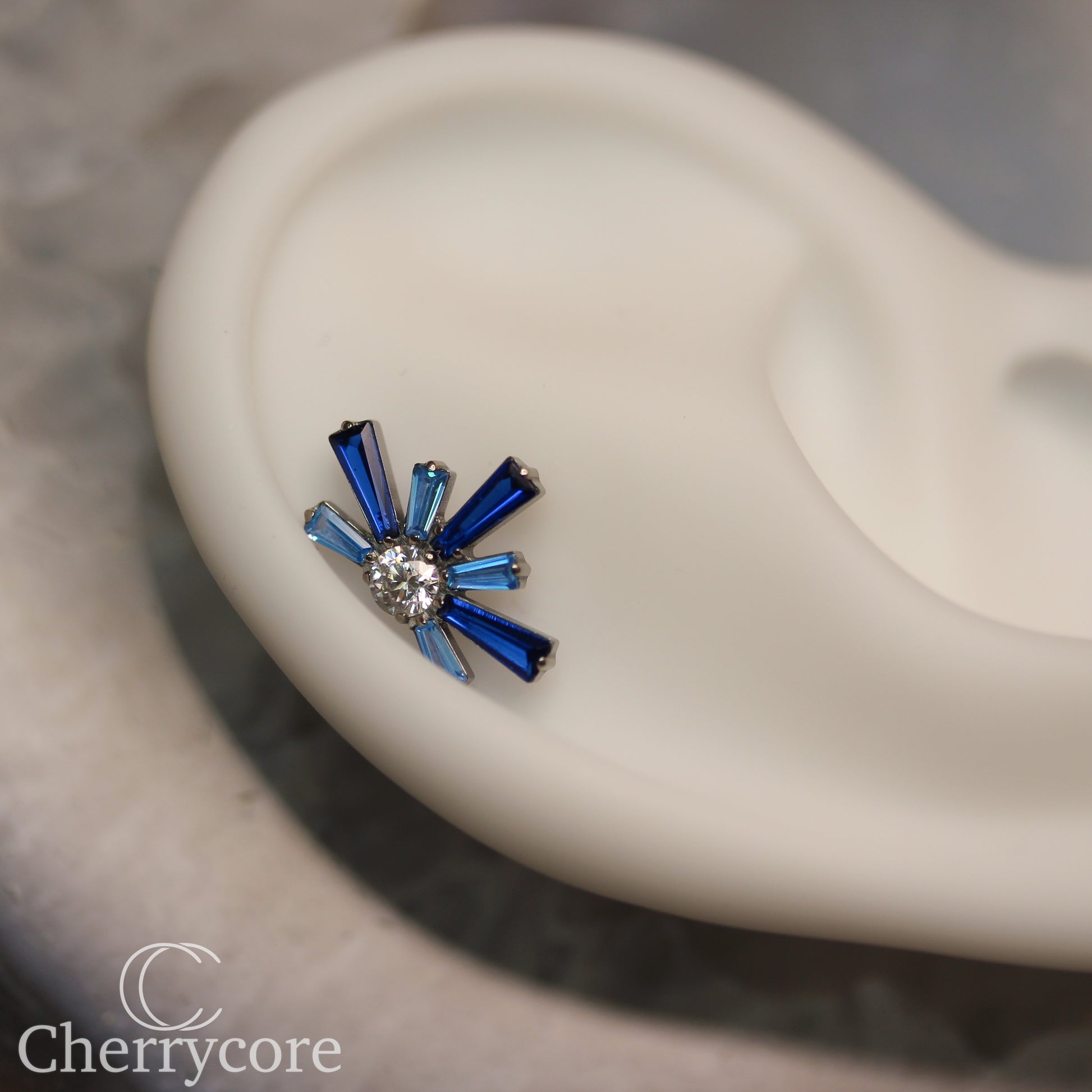 Super Nova- Sapphire & Aqua CZ- Titanium Threaded attachment