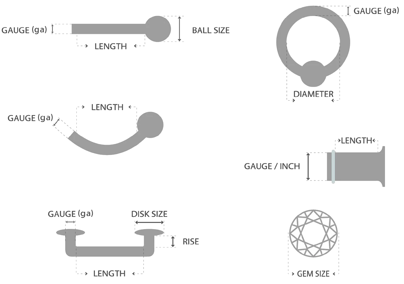 Piercing Jewellery Type Gauge Length/Diameter