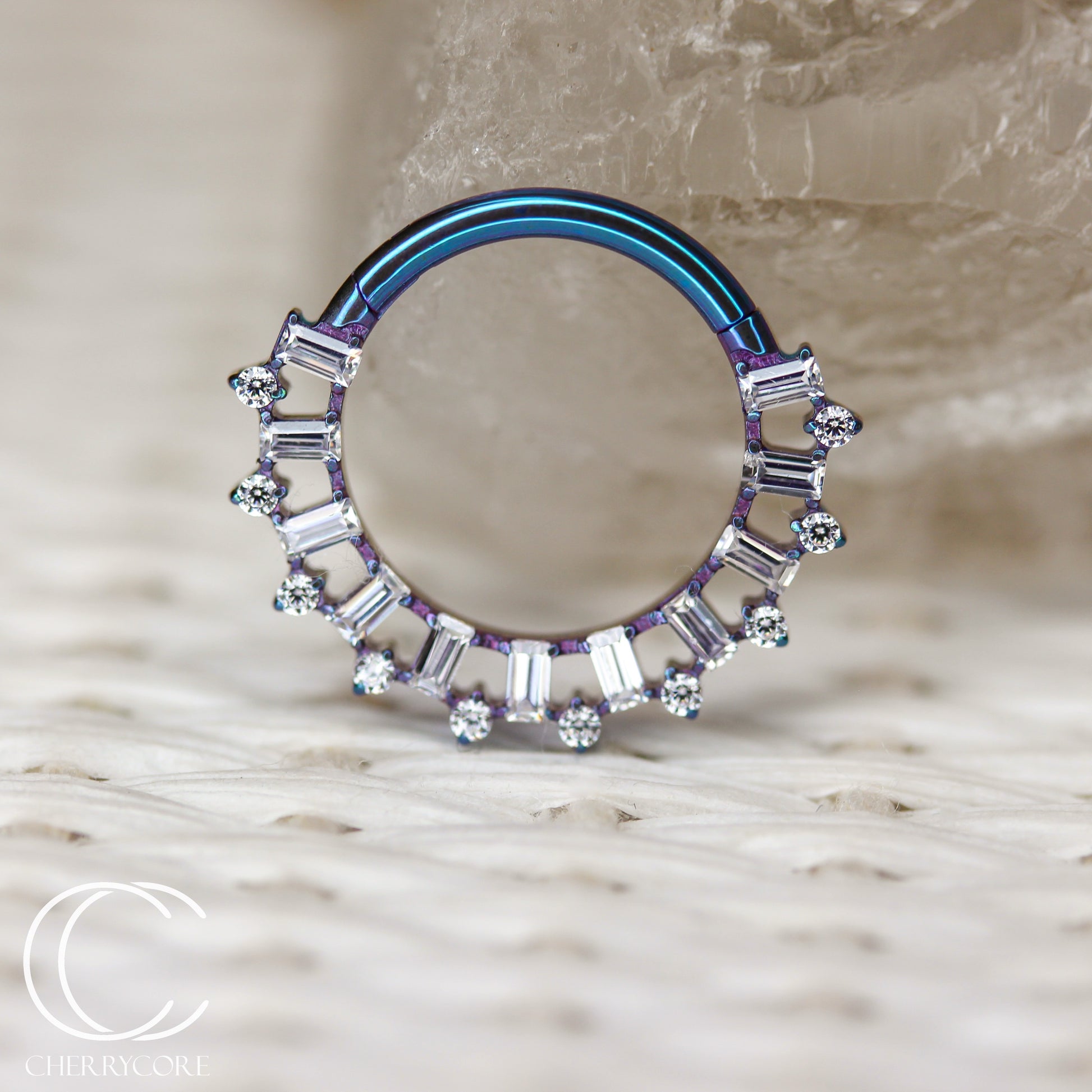 Titanium Alternating Prong Set Baguette Gem Hinge Ring- Teal Andondised